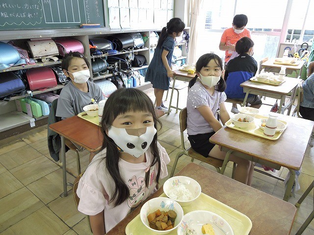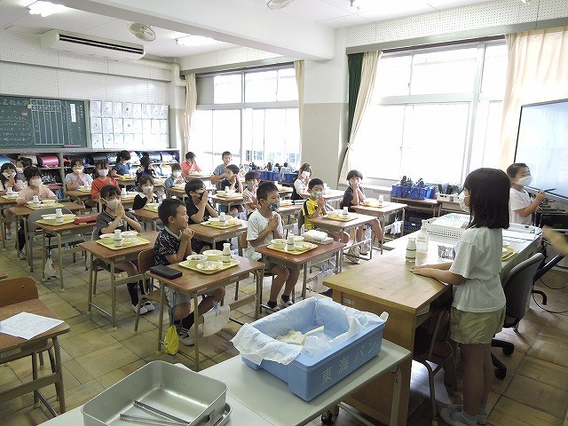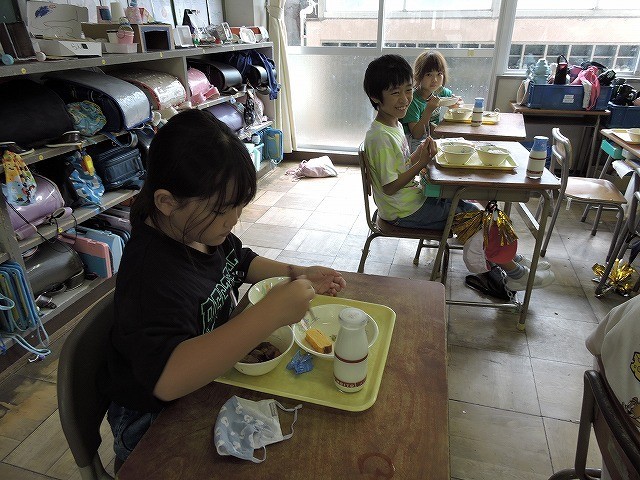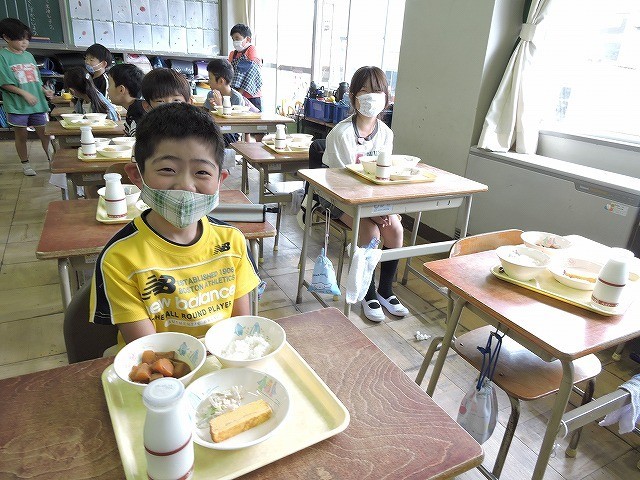 配膳が終わって「いただきます」前後の2年生の様子です。いつでも味わっておいしくいただいています。