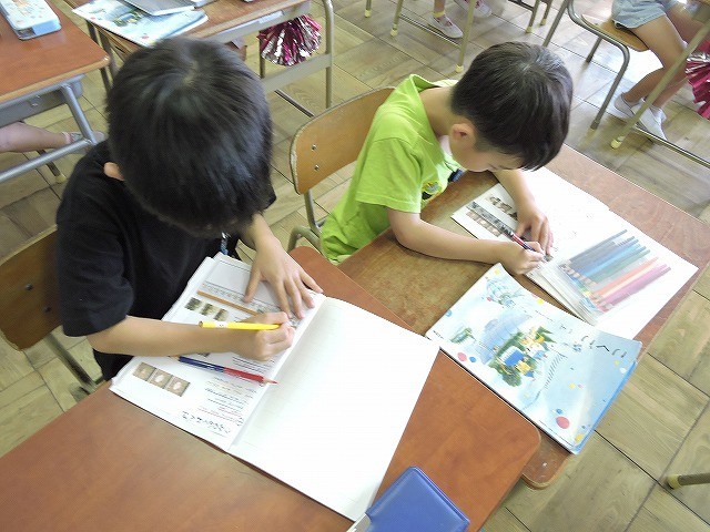 海のいきものが海中でどのようにかくれんぼをしているのかを読み取りました。色を付けて線を引いたので、とてもよくわかりました。