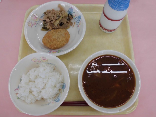ごはん・牛乳・かつおカツ・れんこんのいため物・なめこのみそ汁