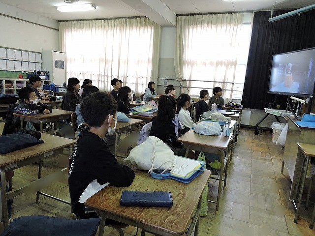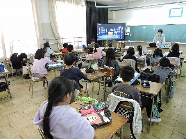 とび箱を上手に飛ぶコツを学習しました。踏み切りや着手、空中姿勢、着地など気を付けるポイントを映像で確認しました。良いイメージができましたね。