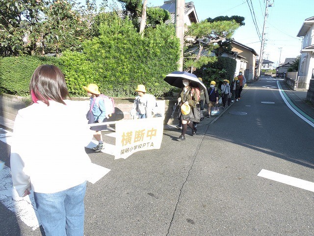 雨上がりの澄んだ空が気持ちよい朝です。PTAと地域のみなさまは、今朝も安全な登校のための見守りにご協力いただきました。いつも本当にありがとうございます。