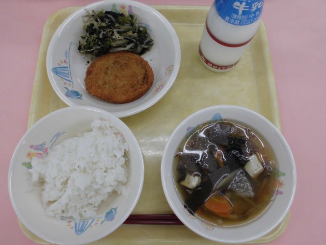ご飯・牛乳・コロッケ・鉄骨和え・けんちん汁