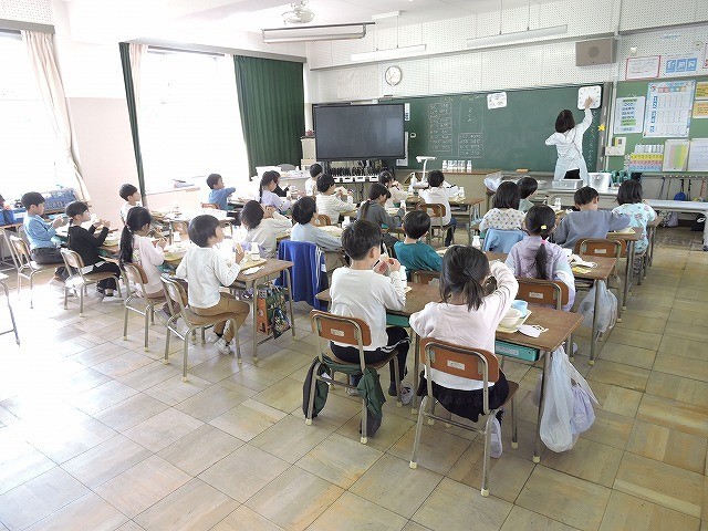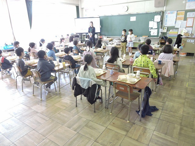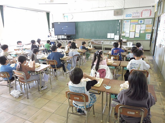 すっかり配膳や準備にも慣れ、落ち着いておいしく給食をいただきます。