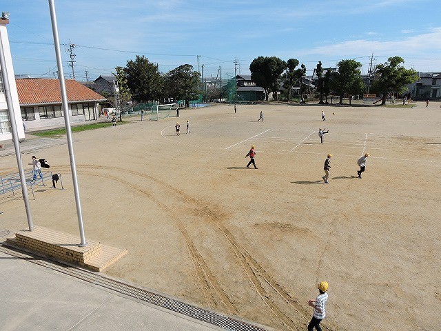 今日は1~5年生が校外学習に出かけているので、6年生だけが学校で生活しています。長い放課には、運動場をいっぱいに使って6年生が元気に体を動かしています。