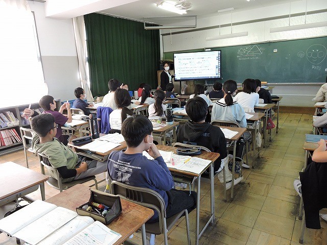 図形の拡大・縮小の学習をしています。今日は拡大図、縮図という言葉とその意味について、実際に図形で確認しながら学習しました。