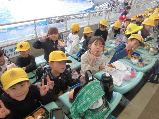 その後、なかよし班のみんなと一緒に食べました。おうちの人に用意してもらったお弁当をにっこにこでほおばり、午後の見学スタートです。