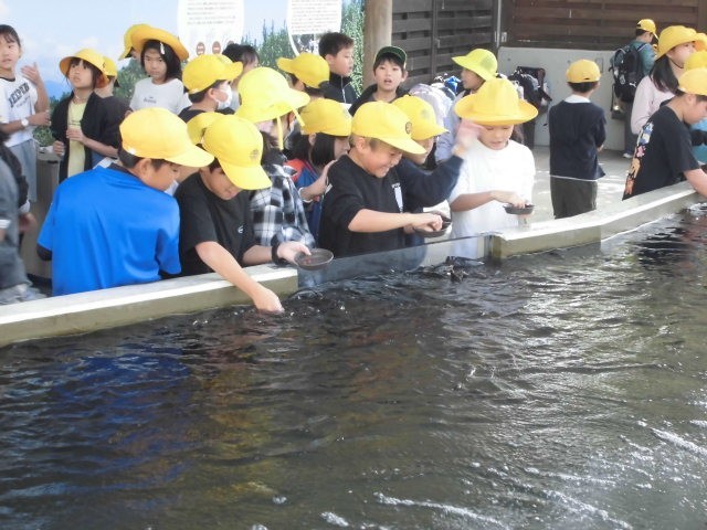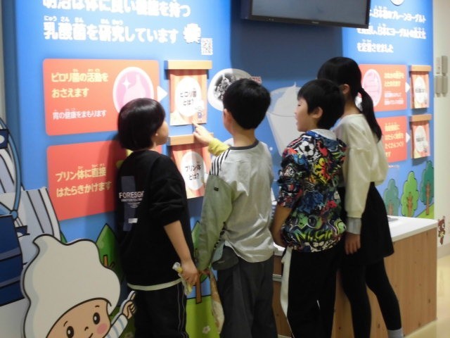 アクア・トトでは、クイズの答えを探しながら、いろいろな生き物を観察し、最後は魚のえさやり体験をしました。午後は、明治なるほどファクトリーに行き、ヨーグルトや牛乳の秘密について学びました。
