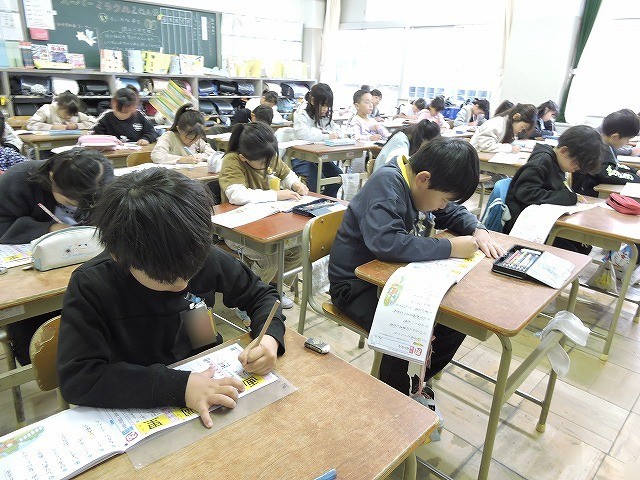新しい漢字を覚えています。書き順や字の形など気を付けながら丁寧に書いて覚えています。みんな真剣です。