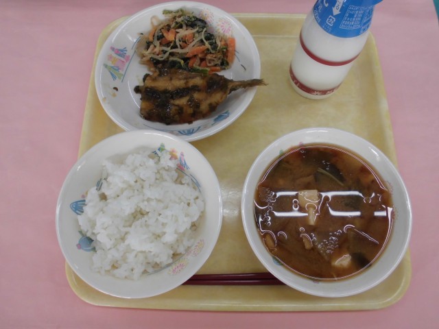 ごはん・牛乳・いわしの香味だれ・ごま和え・さつまいものみそ汁