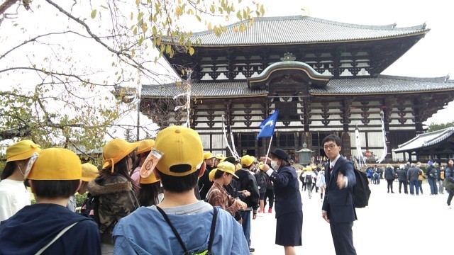 東大寺に着きました。 大仏殿の大きさに 皆 びっくりしています。