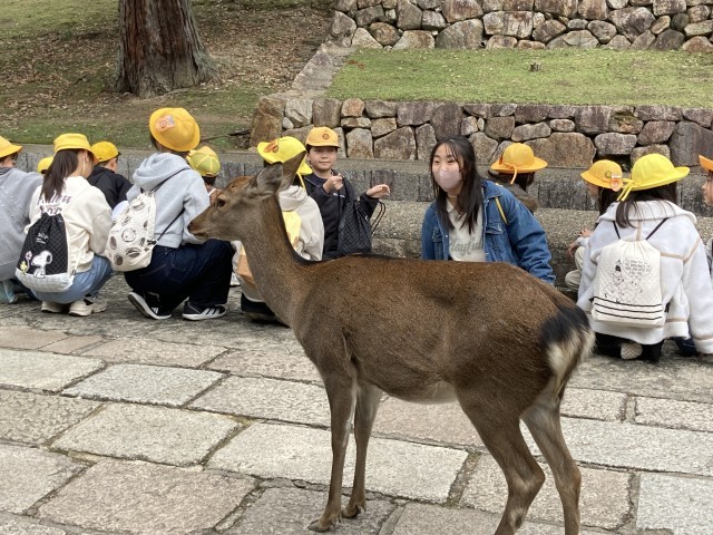 鹿せんべいを受け取ったグループから、班別の行動です。