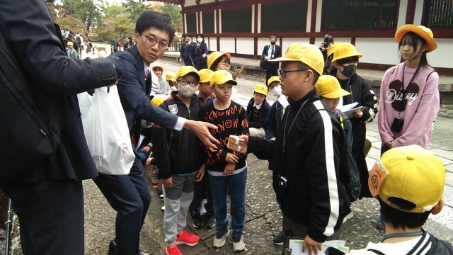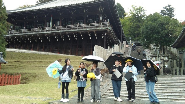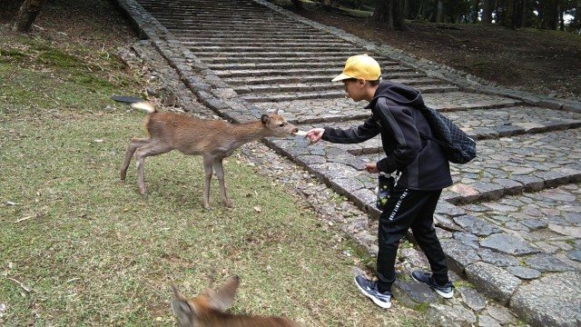 もらった 鹿せんべいをあげました。少しドキドキしました。判別 行動では チェックポイントを順番に回っています。ポツポツと雨が降っていますが、ひどく濡れるほどではありません。