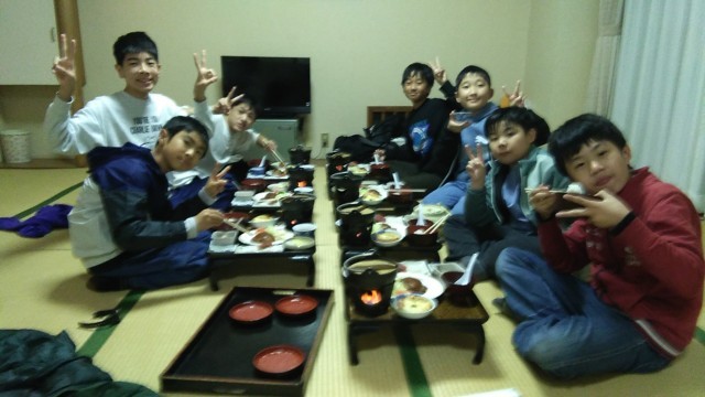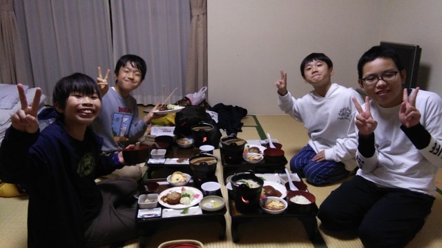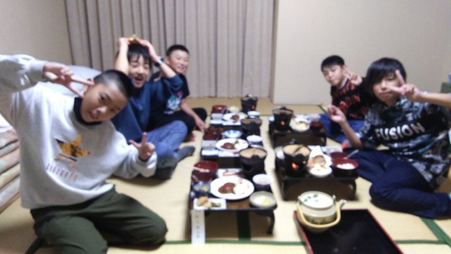 部屋での夕食です。 みんなで美味しくいただきましたまる お腹いっぱいです。