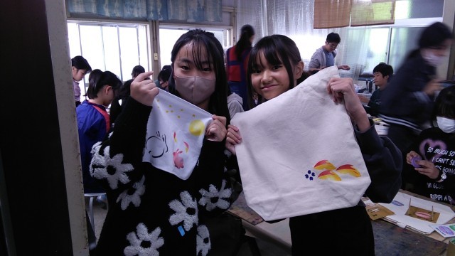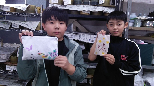 友禅染の作品が完成しました。修学旅行と京都の良い思い出の作品ができました。