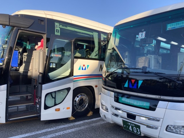 多賀のサービスエリアでトイレ休憩をして、学校に向かっています。ガイドさんよるとあと1時間かからないぐらいで、学校に到着できるそうです。