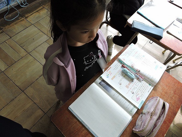 かけ算の学習は4の段までがんばって行っています。先生の話を真剣に聞き、かけ算をつかった問題にも挑戦しています。