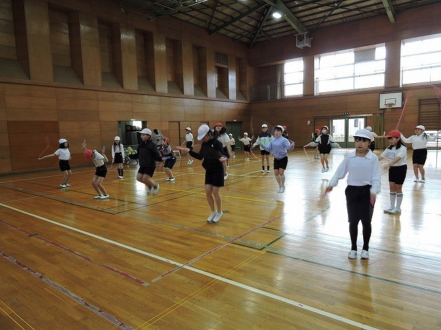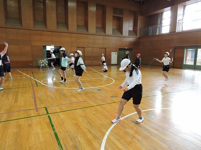 体育の授業でなわとび運動を始めました。全身運動やリズム感を養うのによい運動です。自分の跳べる技を増やそうと頑張りました。