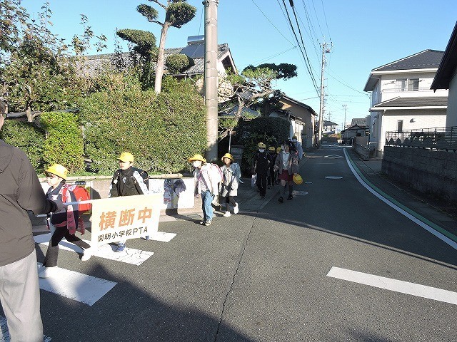 澄み切った青空が美しい朝です。土曜日の今朝もPTAと地域の方々が温かく子どもたちの登校を見守ってくださいました。いつも本当にありがとうございます。
