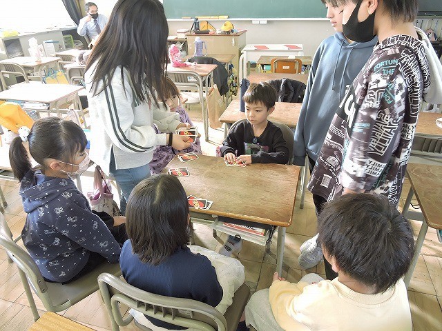 たてわりまつりのお店が決まったら、たてわりペア遊びの時間です。ペアで運動場へ行き、体を動かすペアが多くいました。また、教室でカードゲームをするペアもいました。みんな楽しく仲良く活動できました。