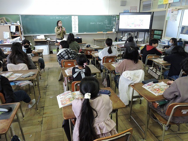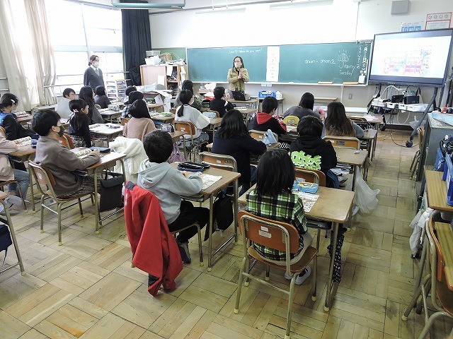 英語の学習をしています。今日は様々なフルーツの言い方を覚えて、「何がいくつほしいか」を問う練習をしました。みんな頑張りました。