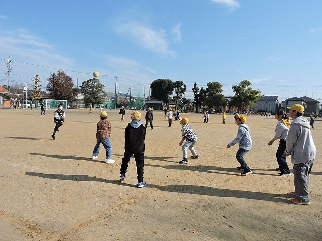 中間放課や昼放課の長い時間の放課になると、天気のよい日は多くの子が元気に体を動かしています。青空の下、とてもさわやかな笑顔であふれています。