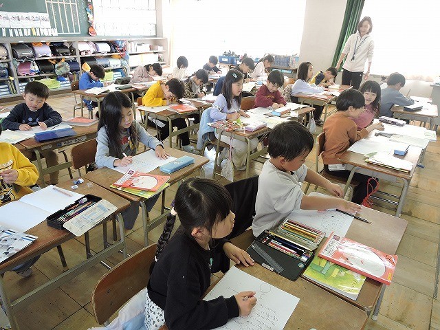 一枚のイラストから想像してお話を作りました。文章の書き方や決まりについても教えてもらいました。わくわくするお話をたくさん楽しんで書きました。
