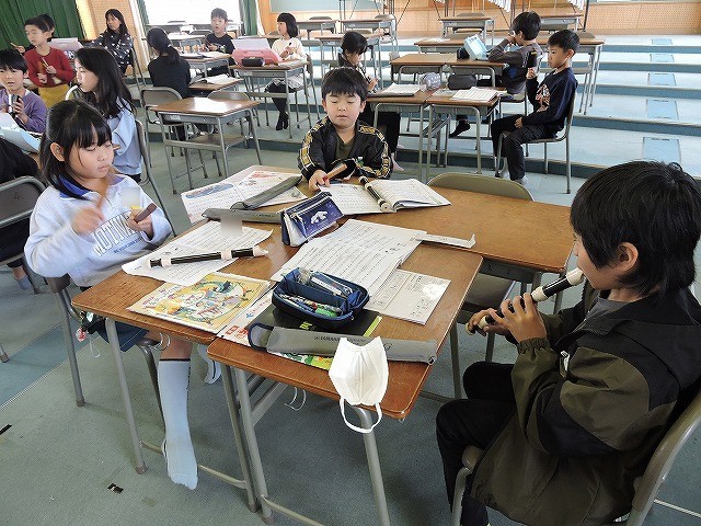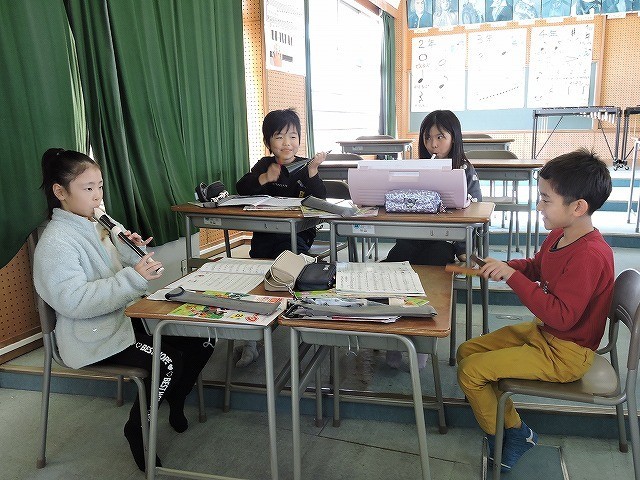「メロンの気持ち」をグループで合奏しました。リズムを合わせて演奏し、ぴったり決まると最高に気持ちがよいです。頑張りました。