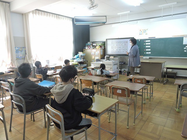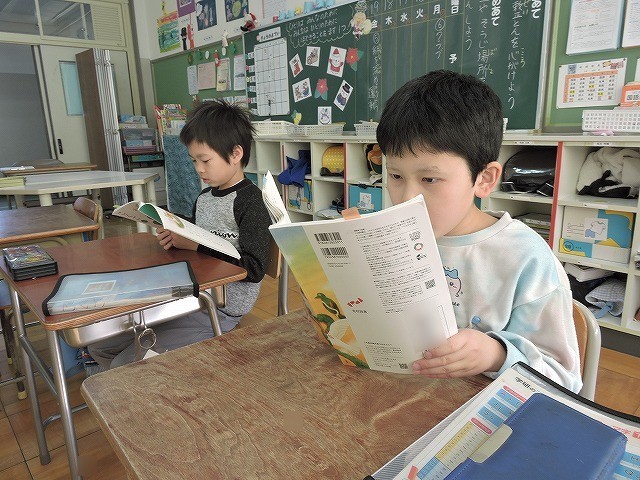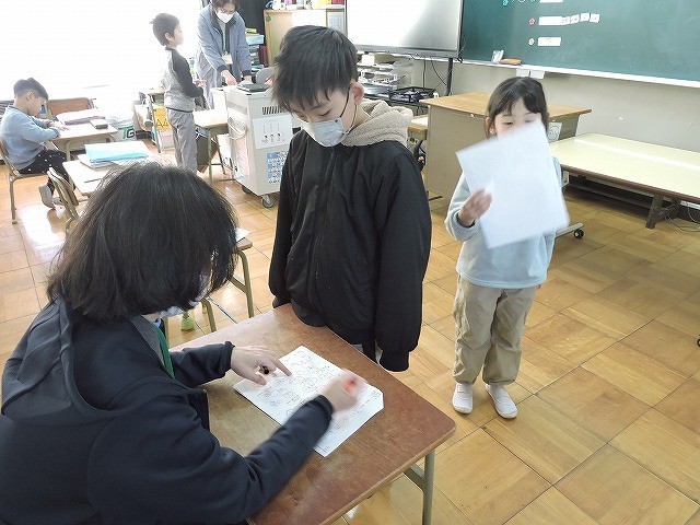 国語の時間です。ことばあそびや音読、読み取りプリントなどを行いました。どの活動も一生懸命取り組んでいました。プリントでは先生に確認をしてもらいました。頑張りました。