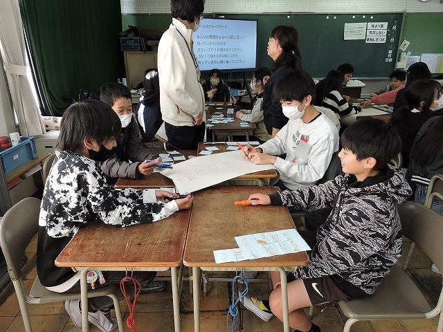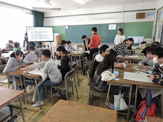 テーマに沿って、世界の国々の現状について学びました。また、グループでさまざまなワークショップを行い、話し合う中で考えを深めていました。