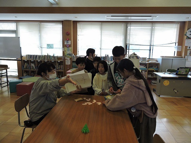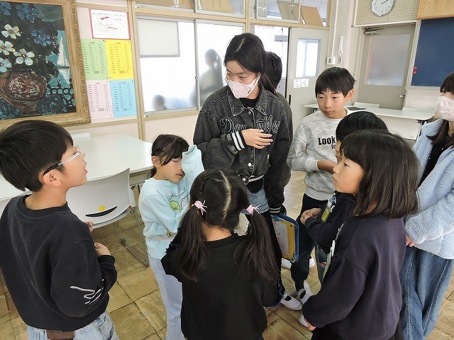 たてわり班で校内を巡り、パズルを完成させるためゲームやクイズに挑戦しました。高学年と低学年が協力して励ましあうといった関わりがあり、たてわり班の関係が深まりました。これまで、放課などの時間に計画や準備を進めてくれたみなさん、本当にありがとうございました。みんなとっても楽しんでいましたよ。