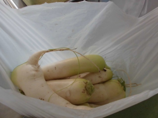 先週の金曜日に、残りの大根を収穫し、調理員さんに届けました。