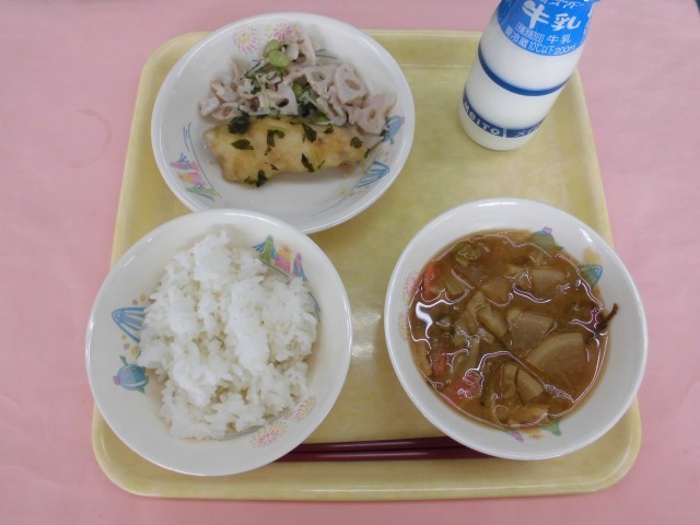 ごはん・牛乳・メダイのあんかけ・れんこんと水菜の和え物・めかぶのみそ汁