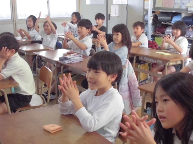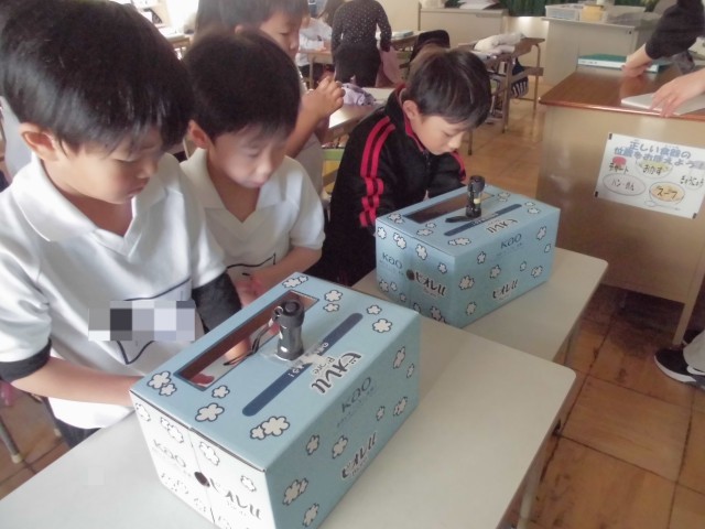また、手洗いの仕方も勉強しました。洗い残しがわかるクリームを手に塗ってから、石鹸で手を洗い、その後ブラックライトで洗い残しを確かめました。思っている以上に洗い残しがあり、みんなびっくり!! 洗いにくい場所がわかったので、これからは上手に洗えそうです。