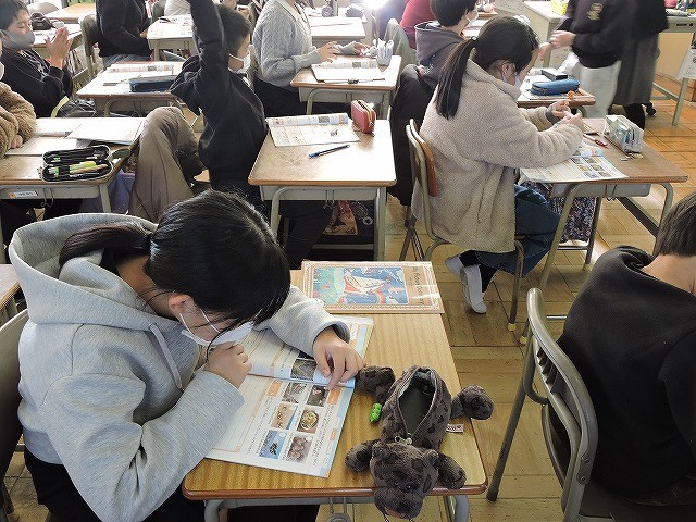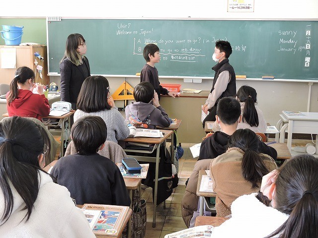 「Welcome to Janan!」の学習です。今日は、日本で行きたいところを友達にたずねたり、それに答えたりしました。いろいろなところが紹介されて、聞いていても楽しかったです。