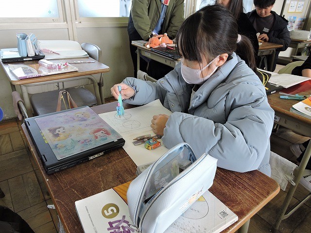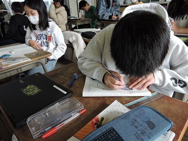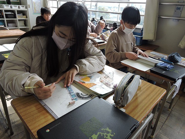 コンパスや分度器を使って、正多角形を描きました。正多角形の性質を使って描きました。丁寧に取り組んで美しく出来上がると、とても気持ちがよかったです。