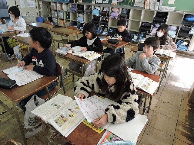 読書週間中の今、図書館ビンゴに挑戦します。その取り組み方をみんなで確認しました。読む本の種類によって、ビンゴになるようにします。「教科書に載っている本」や「絵本」などのお題に合わせた本を読んで、ビンゴを目指したいと思います。