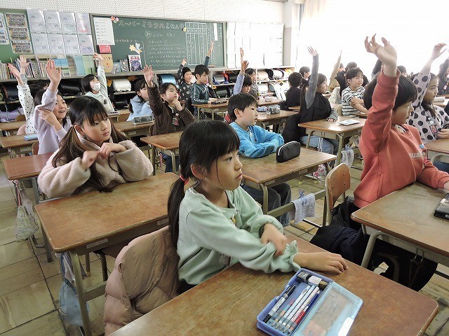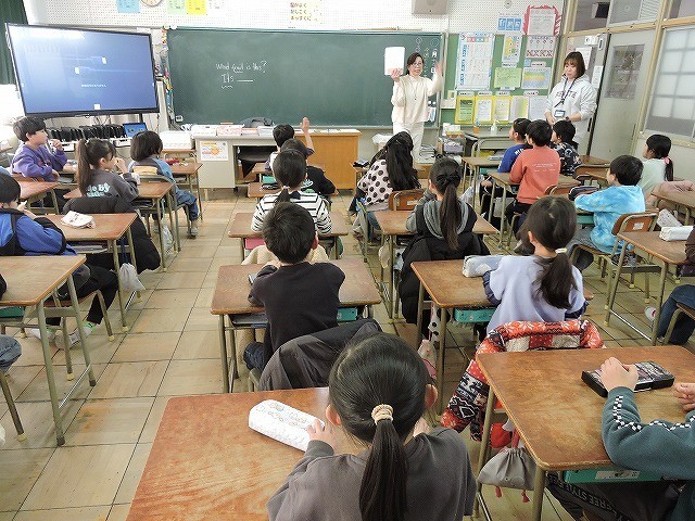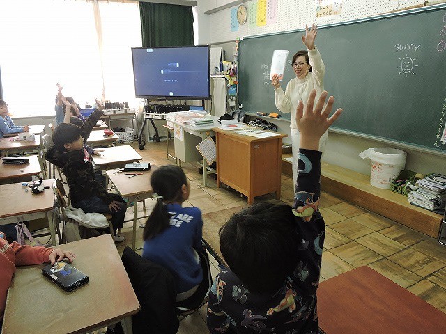 ALTの先生が出すヒントから、何の果物なのかを予想します。見事正解を導き出せたかな?