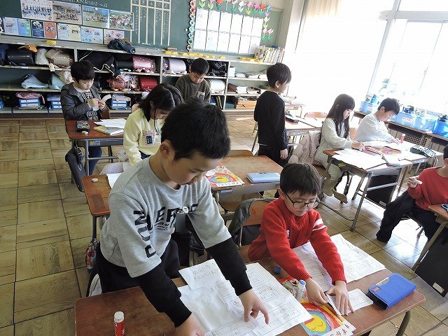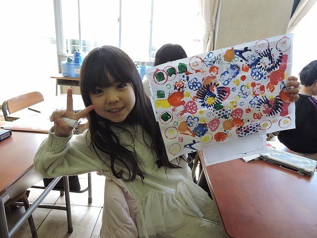 「うつしたかたちから」の作品が完成しました。今日は、友だちの作品のよいところをたくさん見つけて伝えました。