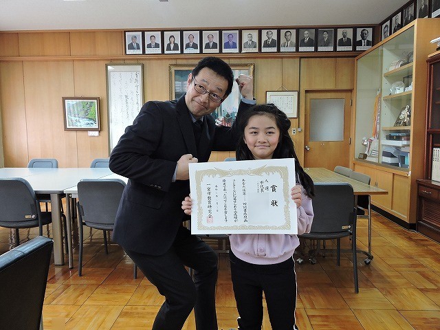 第37回読書感想画コンクールの作品が優れていた人の表彰を行いました。さすが、表彰を受けるだけの人です。凛々しい態度でしっかりと賞状を受け取りました。市代表に選ばれました。おめでとうございます。