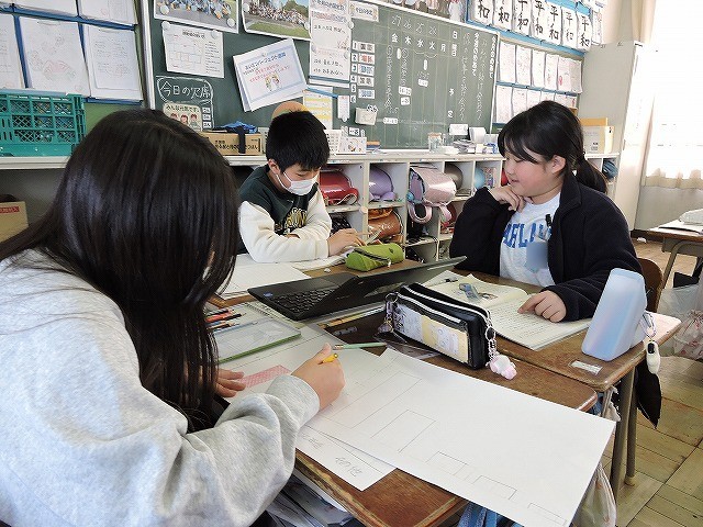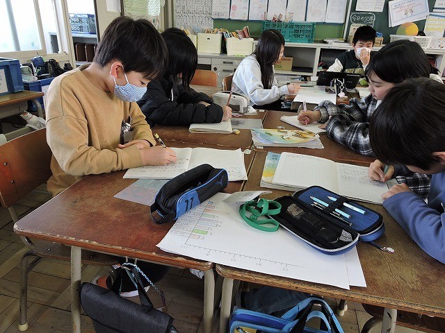 「調べて話そう、生活調査隊」の単元の学習です。グループで協力してアンケートをとり、その内容を発表する原稿や資料作りを頑張りました。みんながよくわかるような発表にしたいと思います。