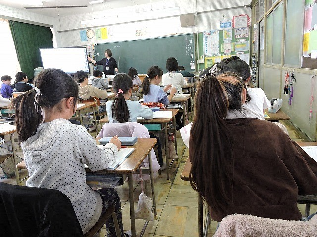 「はんぶんに分けよう」から始まって、分数の学習をしています。今日は、テープの半分の大きさについて考えました。みんな一生懸命学習しています。