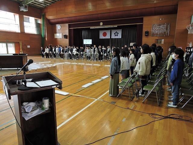 卒業式を来週に控え、予行を行いました。会場にいる全員がよりよい卒業式にしようと全力で取り組んでいました。残りのわずかな日で、卒業式の成功を目指し、学級や学年の心がさらにまとまるとよいですね。