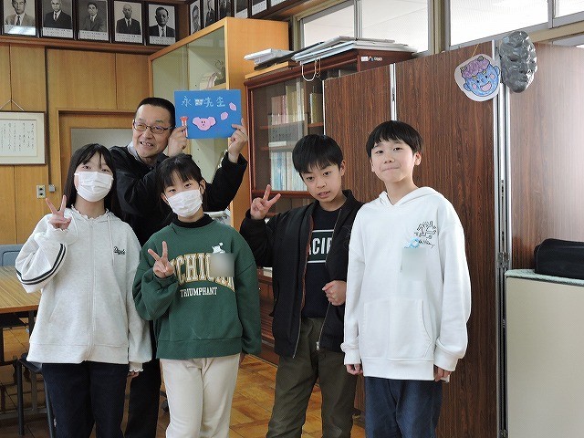 6年生のみなさんが、お礼のメッセージを書いて校長室に渡しに来きてくれました。卒業を前に最高のプレゼントをいただきました。早速読ませていただき、とてもうれしくなりました。6年生のみなさん、ありがとうございました。