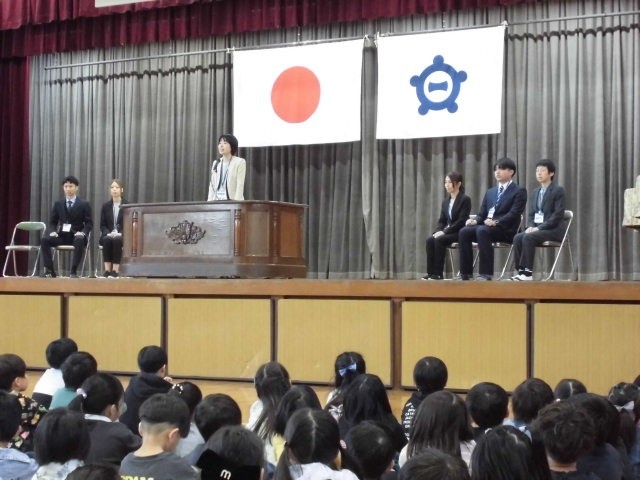 今日は体育館で新任式・始業式がありました。新任式での新しい先生の紹介も校長先生の始業式のお話も、よい姿勢で真剣に話をきいていました。校歌も大きな声で元気よく歌うことができていました。入学、進級したみなさんが「この一年、がんばるぞ!」という意気込みを感じました。