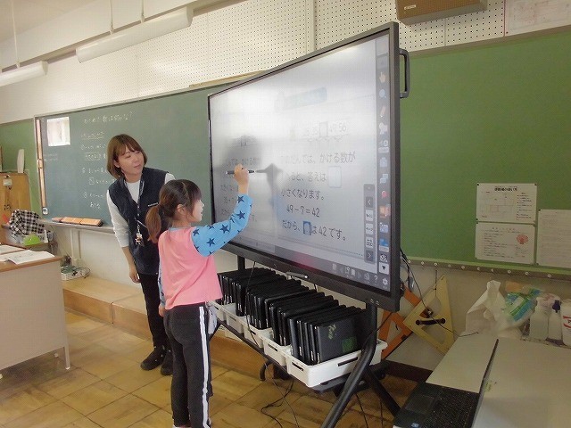 昨年度学んだかけ算や九九についての復習単元の学習です。2年生で学んだことを思い出しながら、みんな集中して学習していました。