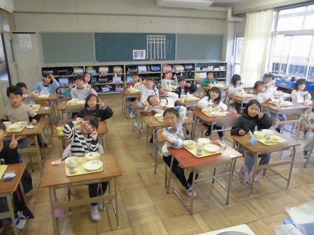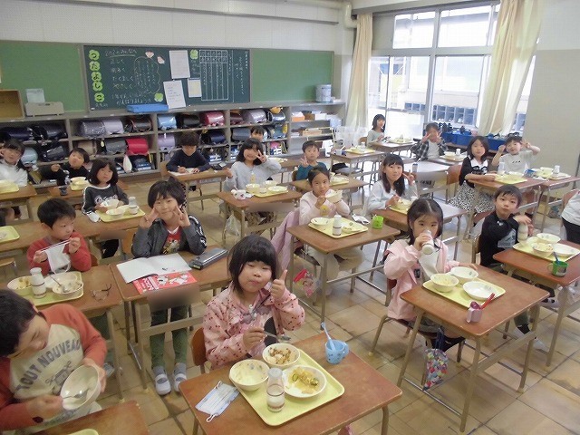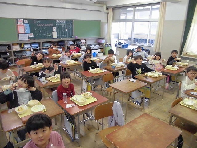 今日のメニューは、大人気の「マーボードウフ・バンサンスー・ごはん・牛乳」です。みんなの笑顔がいっぱいの楽しくおいしい給食の時間になりました。