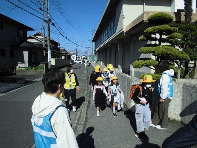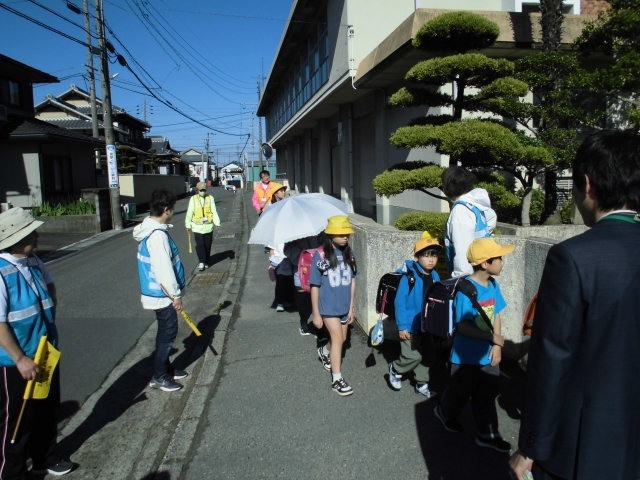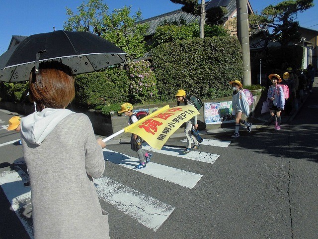 本日の登校の様子です。見守り隊の方やPTA旗当番の方に見守られながら、安全に登校することができました。ありがとうございます。