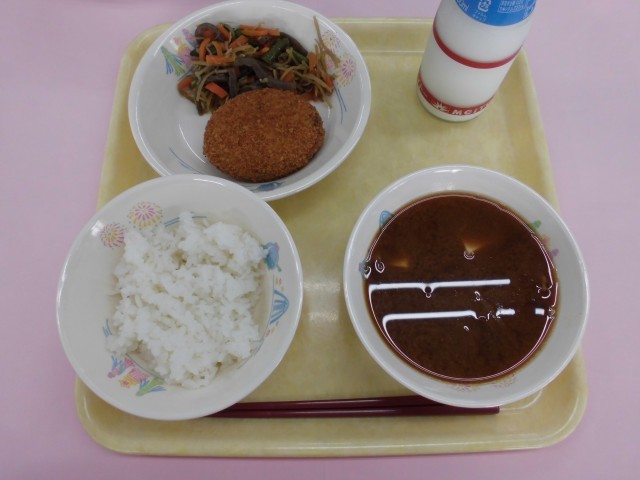 ごはん・牛乳・コロッケ・千切りごぼうの甘辛煮・豚汁