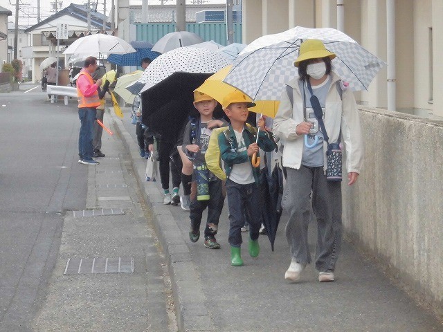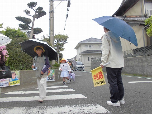 登校時間近くに細かい雨が降り始めました。PTAと地域の方々の温かい声掛けと見守りで、安心して登校できました。毎日本当にありがとうございます。