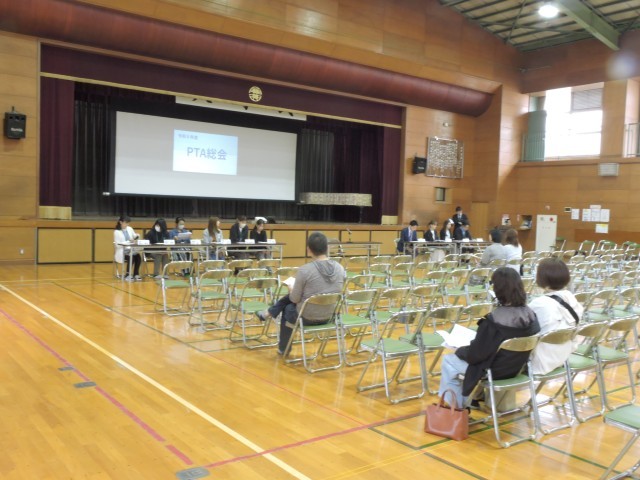PTA総会が開かれました。昨年度の事業報告が行われ承認された後、本年度の事業計画及び予算案が審議されました。